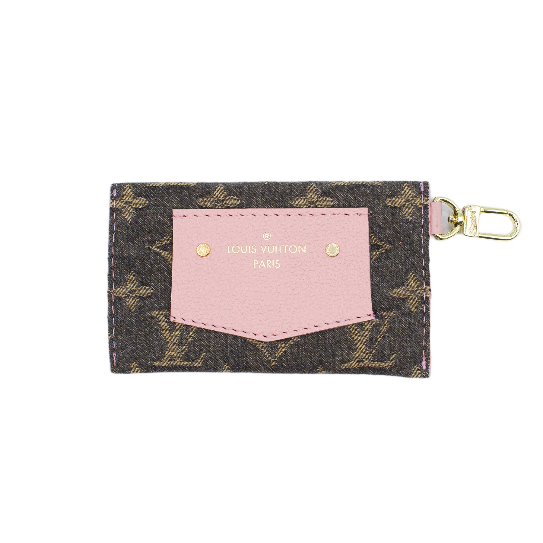 PIP Upcycled LV Denim Wallet with Pink and Upcycled LV Patch