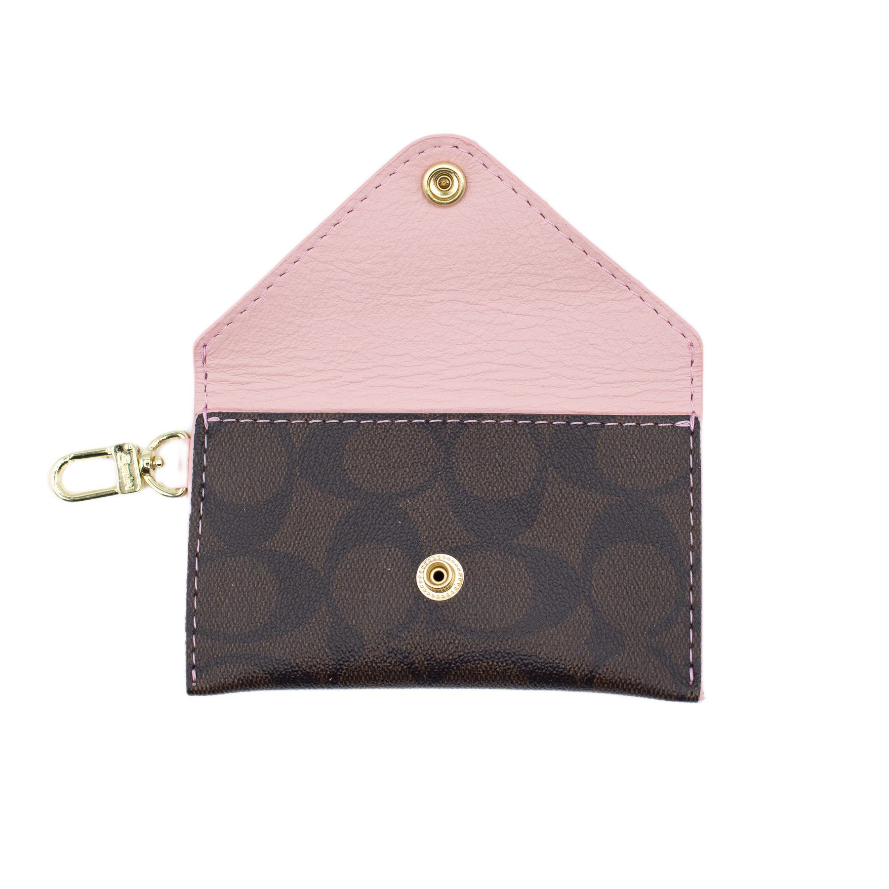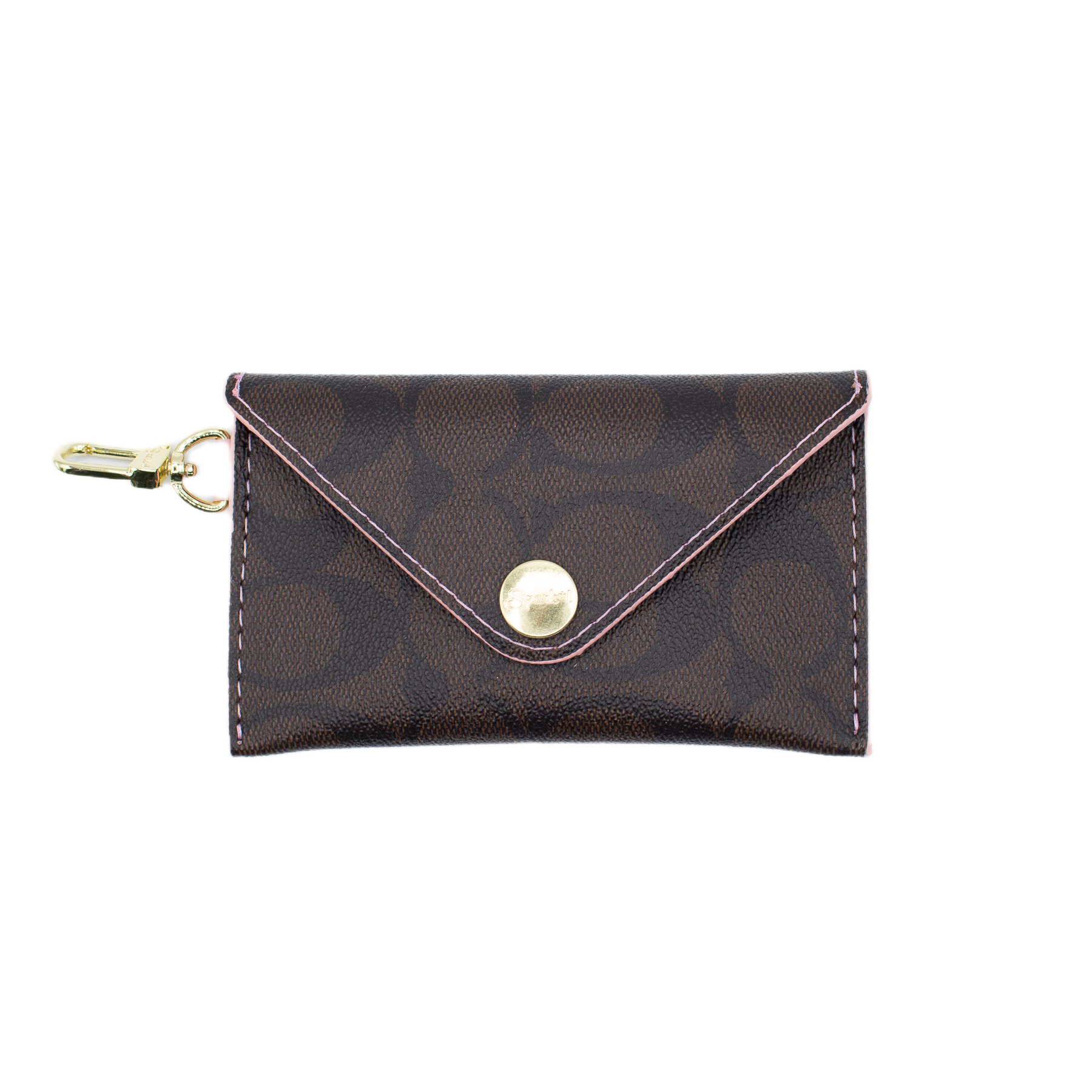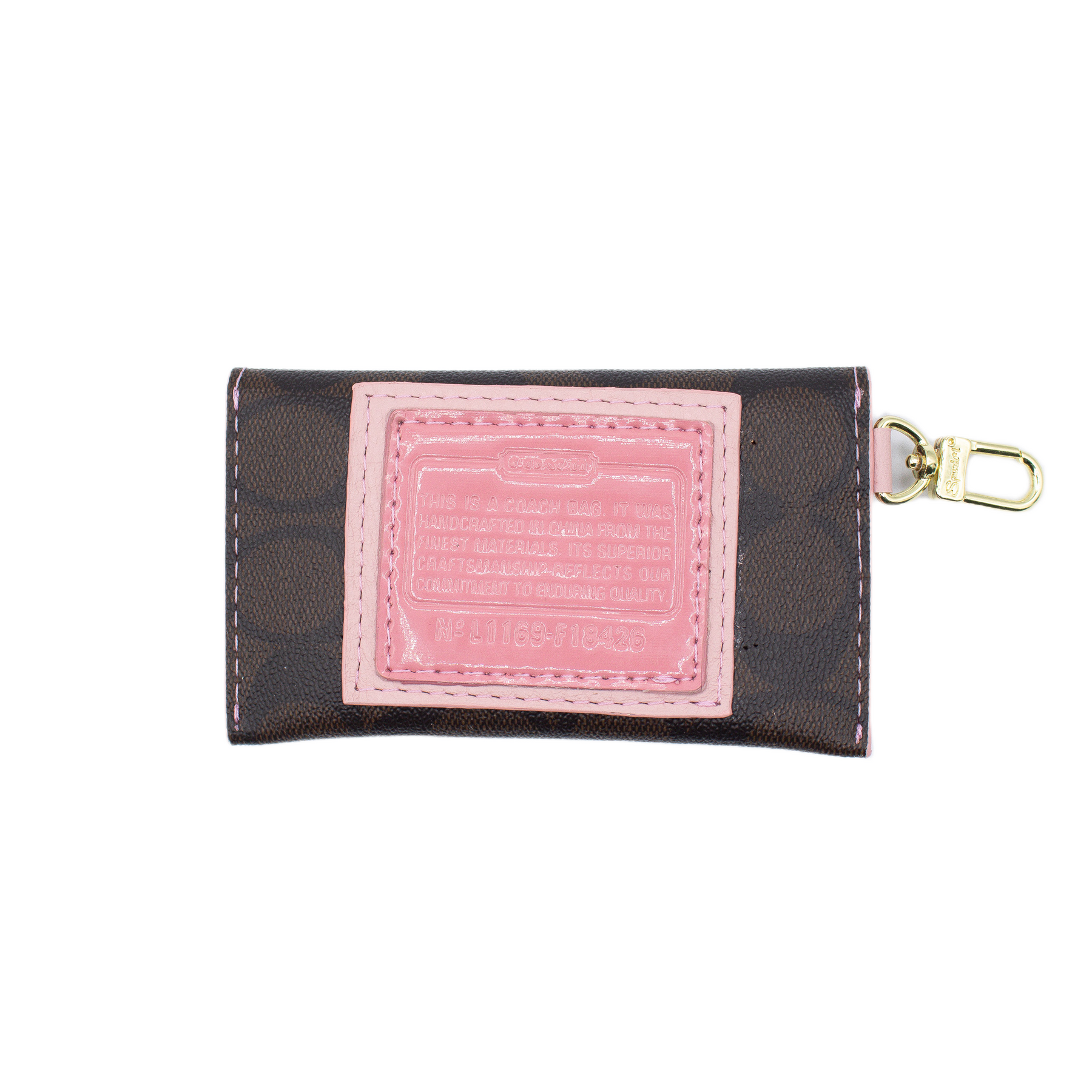 PIP Upcycled Brown Coach Monogram Wallet with Pink and Upcycled Patch