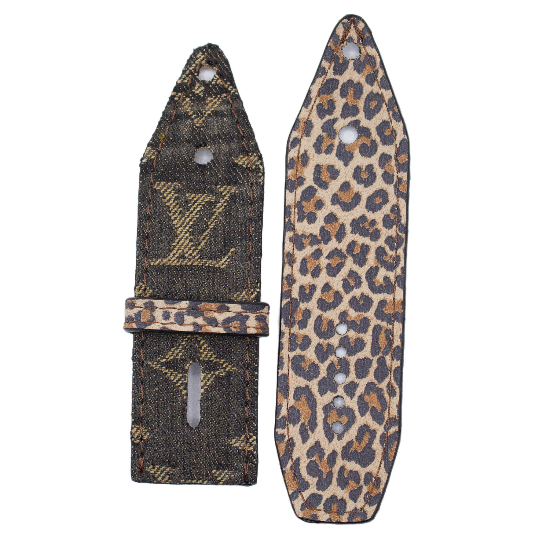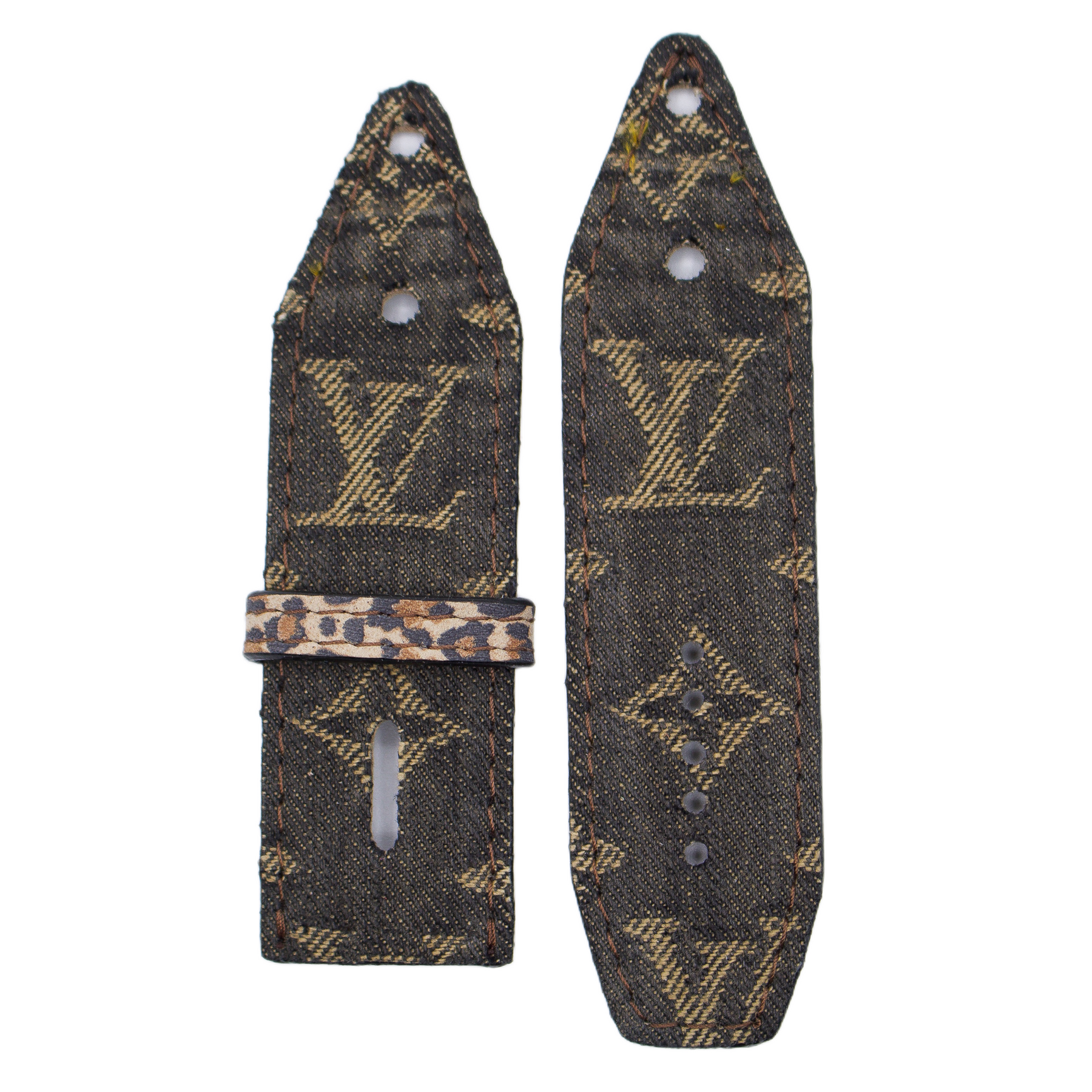 Upcycled Black LV Denim Sivella Watchband with Double Logo (Size 2)