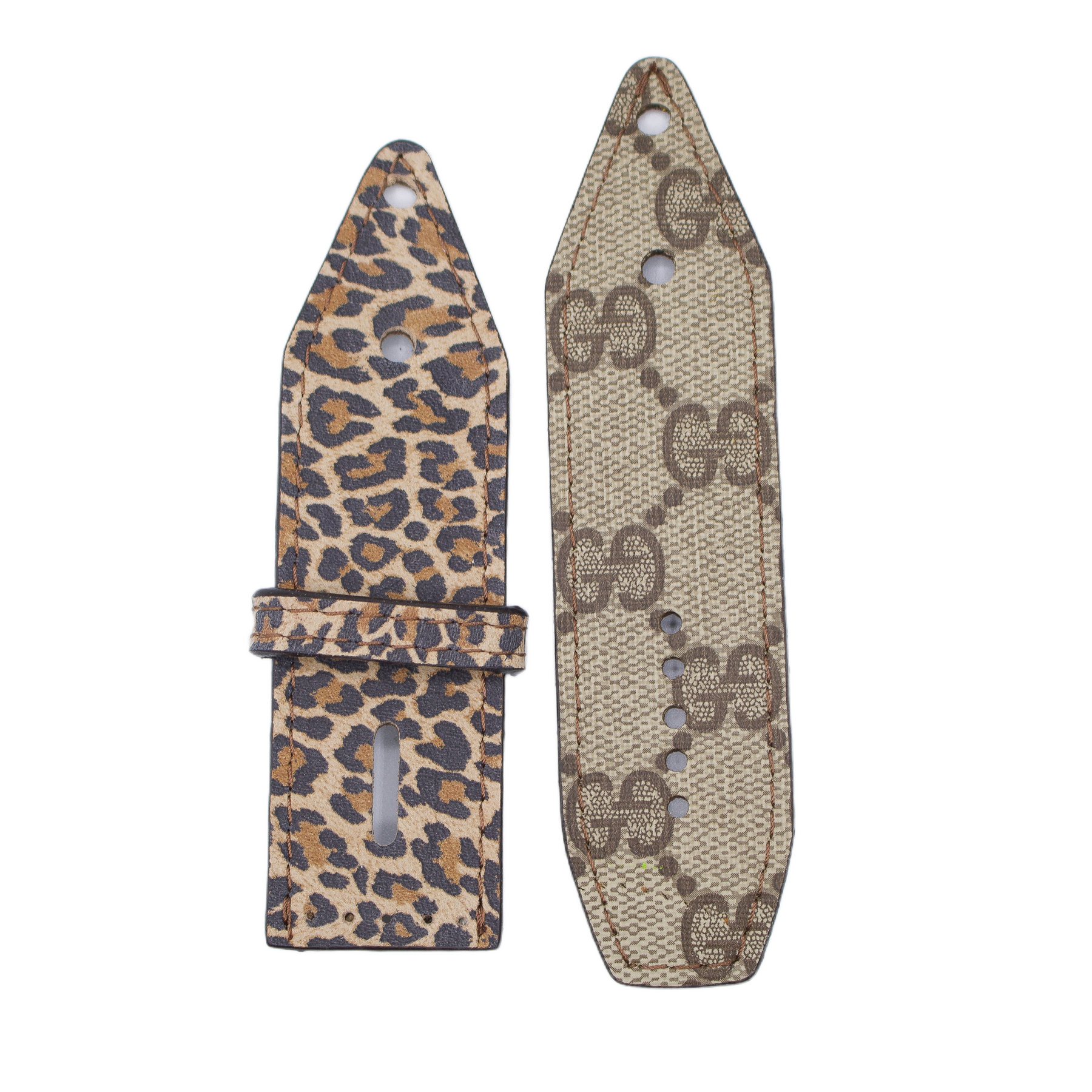 Upcycled Brown Webbed GG and Baby Leopard Nubuck Jekyll Sivella Watchband (Size 2)