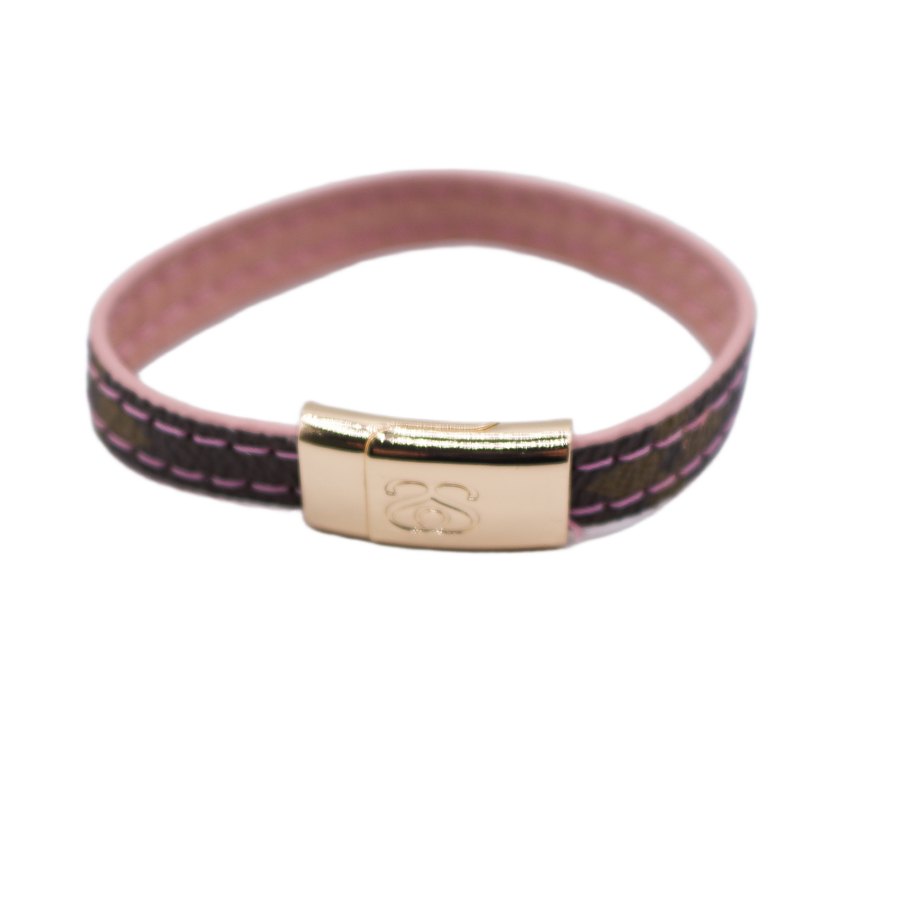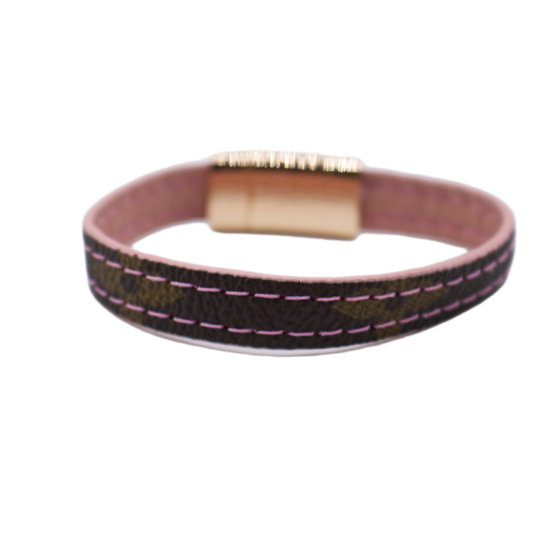 Upcycled LV Monogram Gracie Bracelet with Pink (Size 2, Rose Gold)