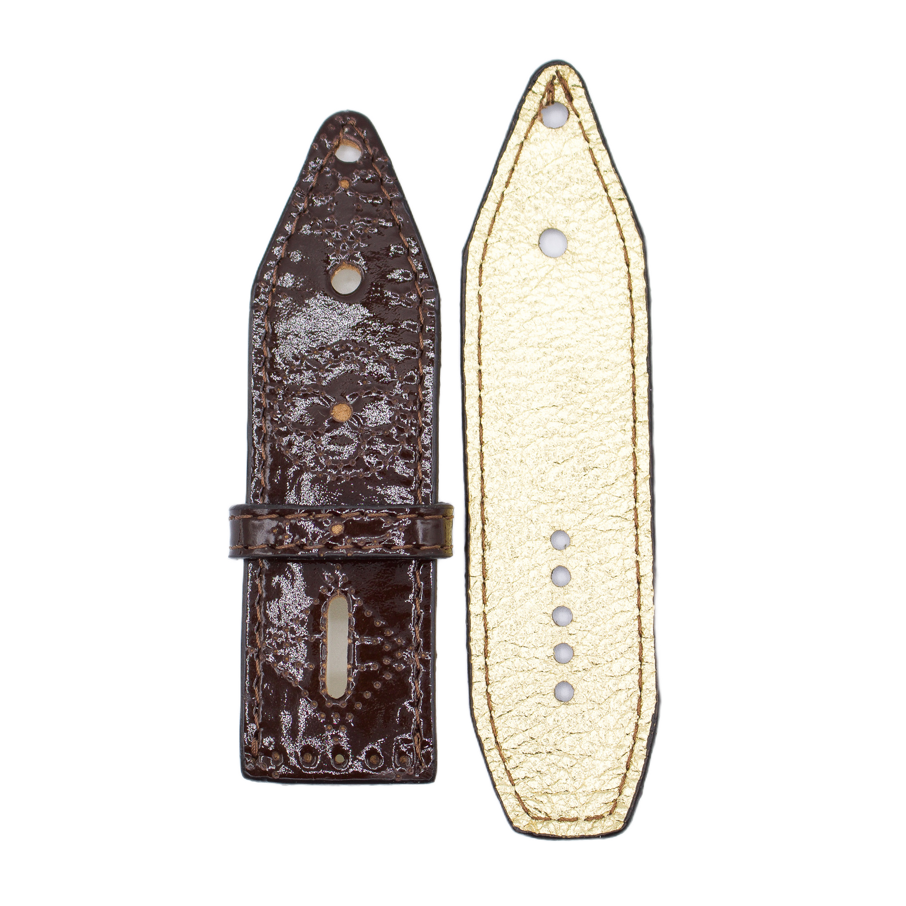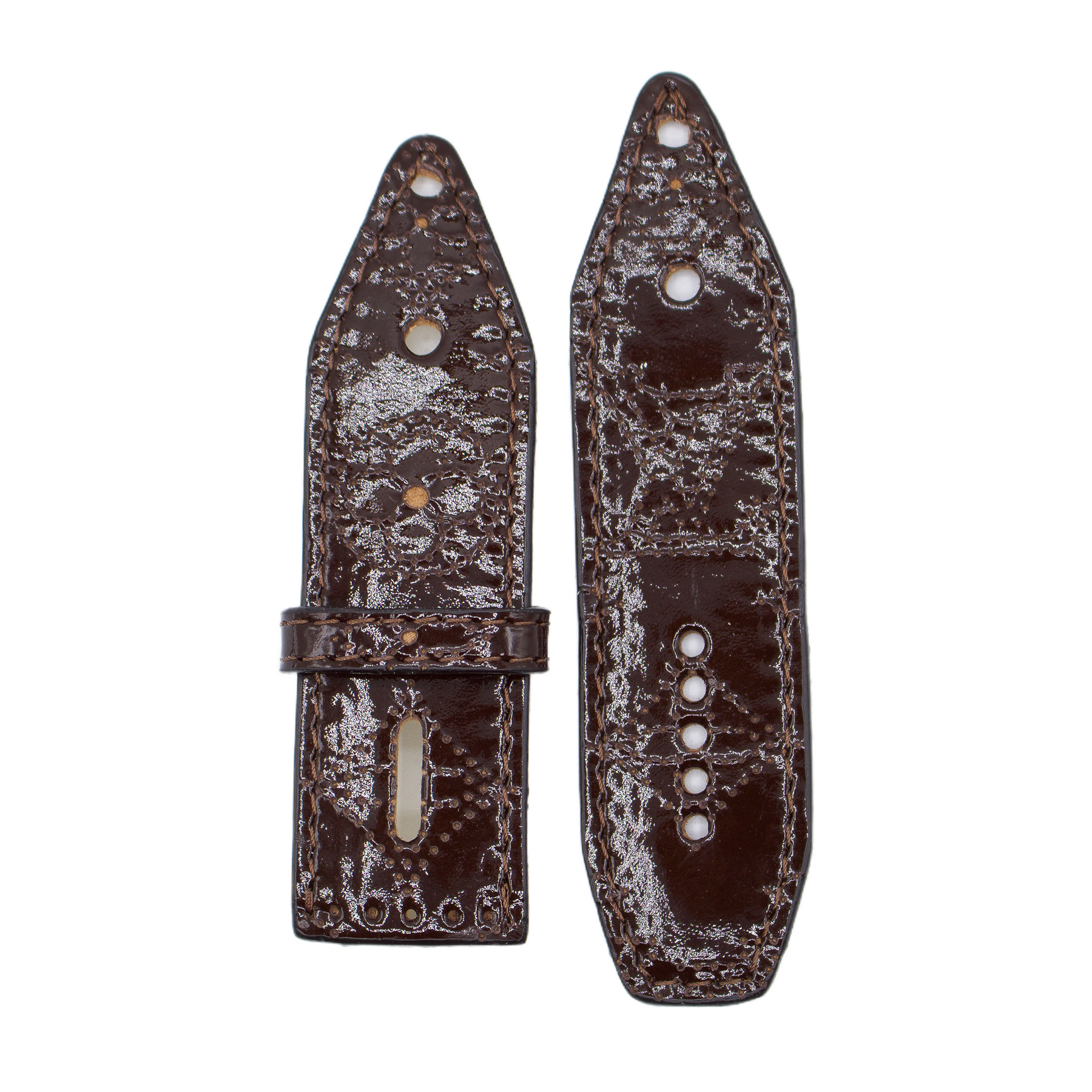 Upcycled LV Patent Brown Mahina Sivella Watchband with Logo (Size 2)