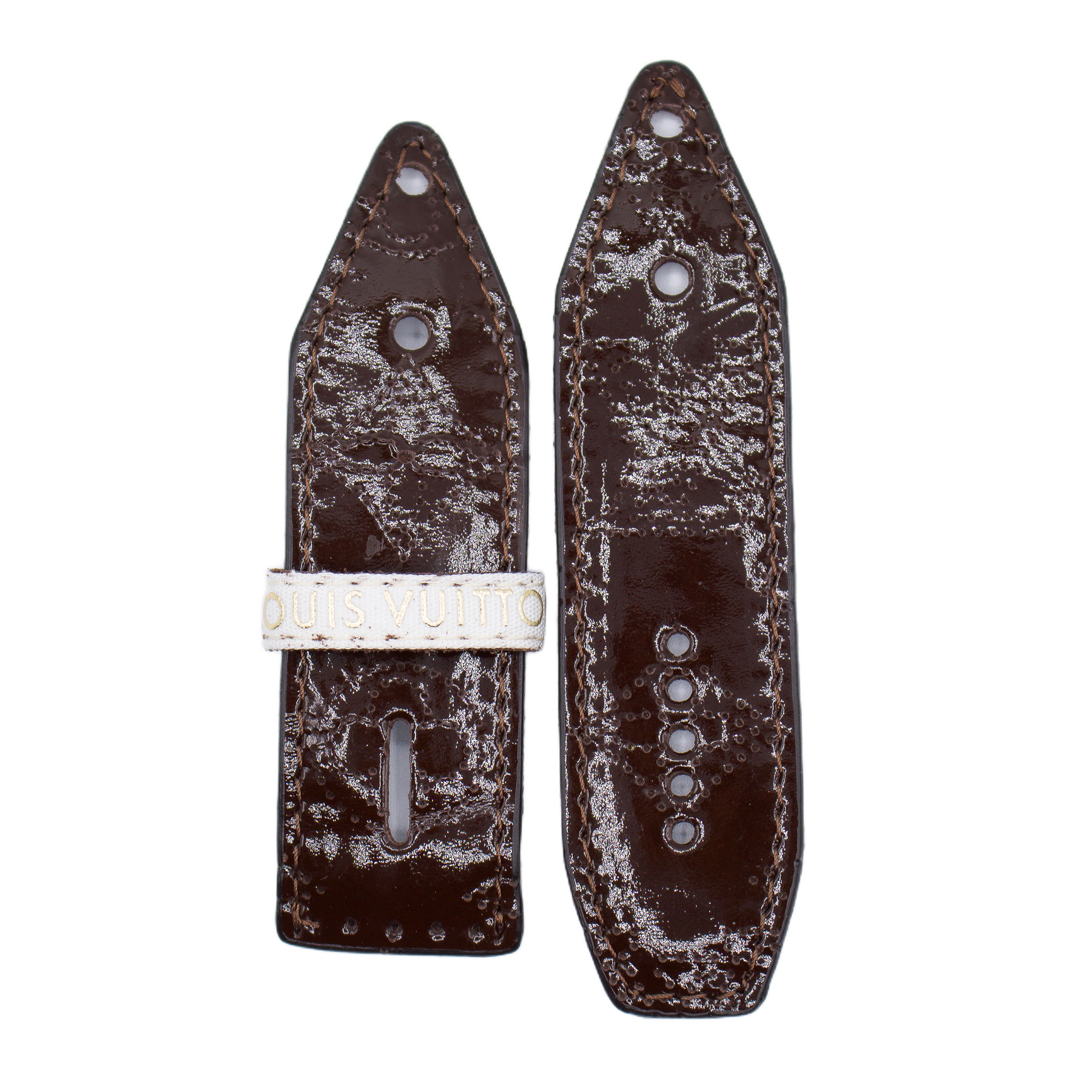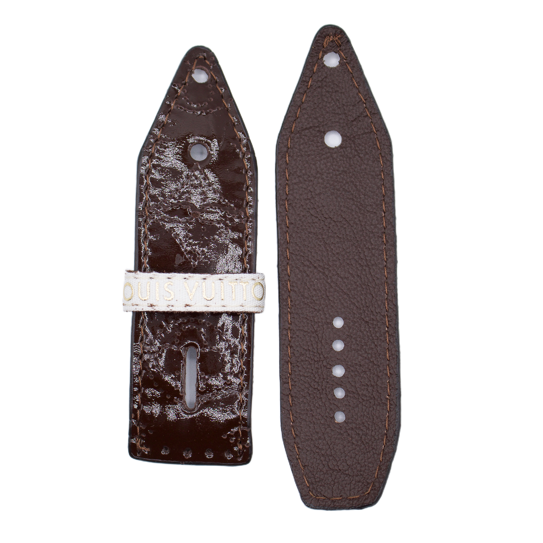 Upcycled LV Patent Brown Mahina with Upcycled LV Keeper & Logo Sivella Watchband (Size 2)
