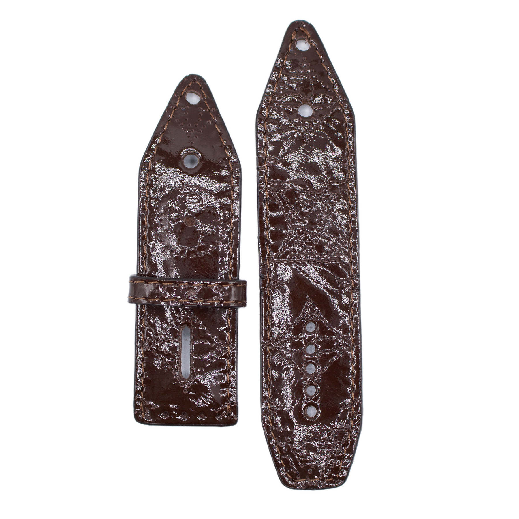 Upcycled LV Patent Brown Mahina Sivella Watchband with Logo (Size 3)