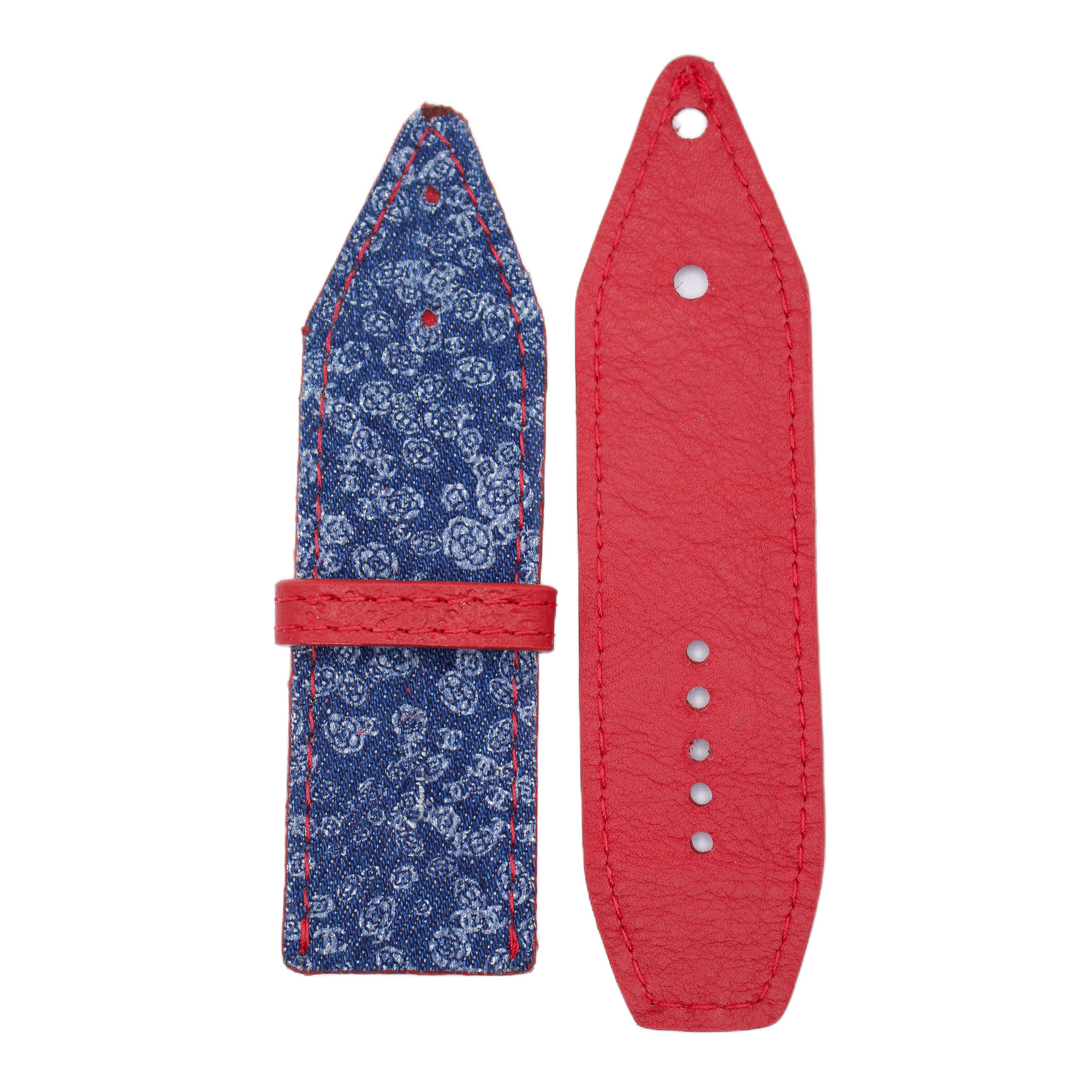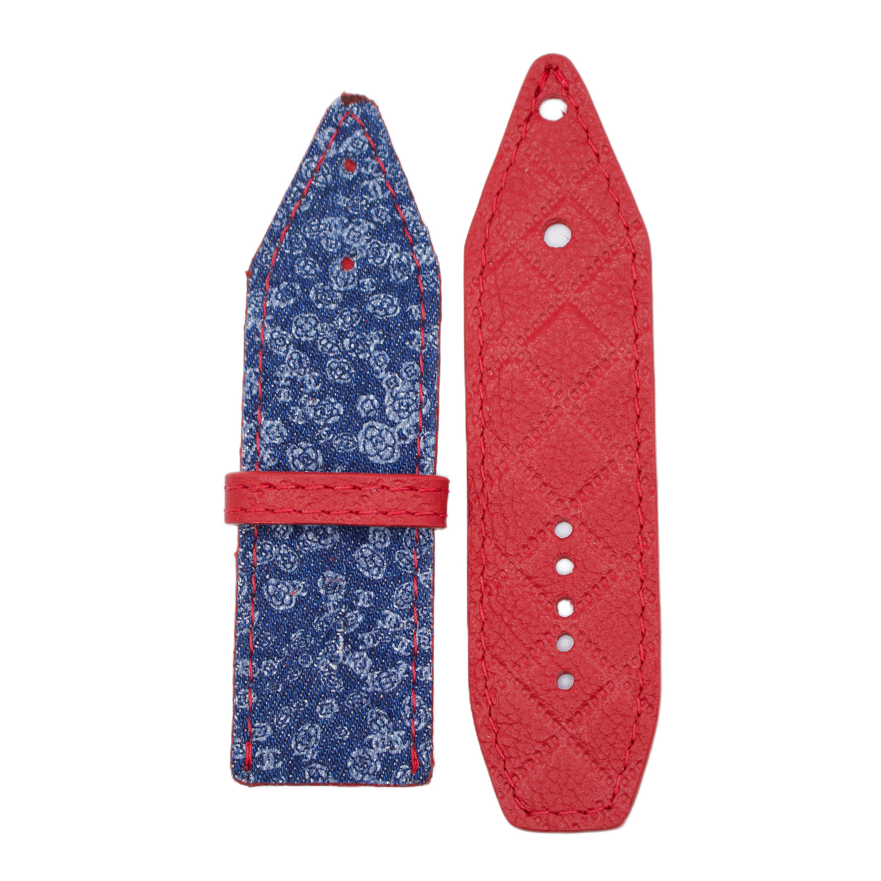 Upcycled Chanel Micro Floral Denim & Red Quilted Jekyll Sivella Watchband (Size 2)