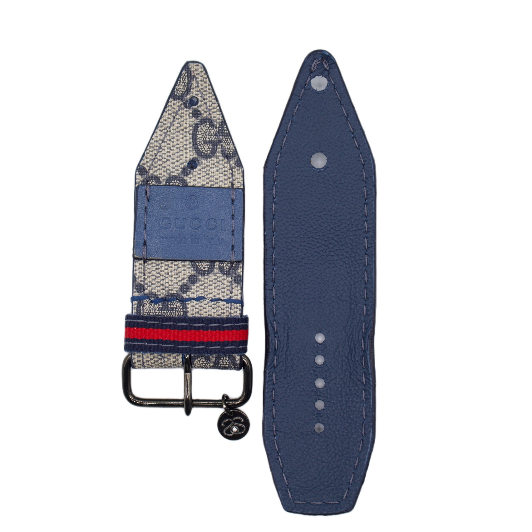 UNICORN - Upcycled Blue Webbed GG Sivella Watchband with Gucci Patch (Size 2)
