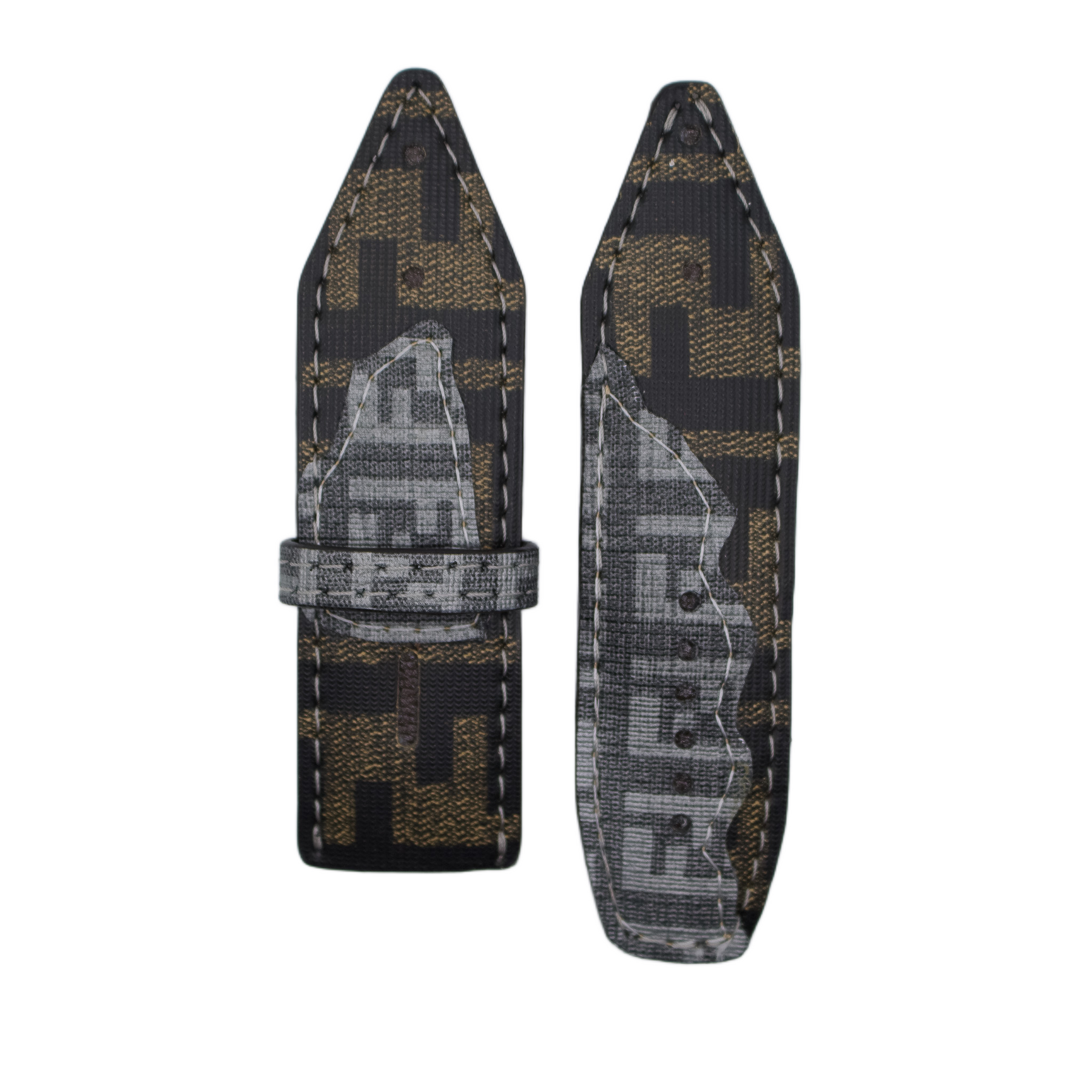 UNICORN - Upcycled Brown Fendi Zucca & Grey Zucchino Custom Camo Sivella Watchband (Size 2)