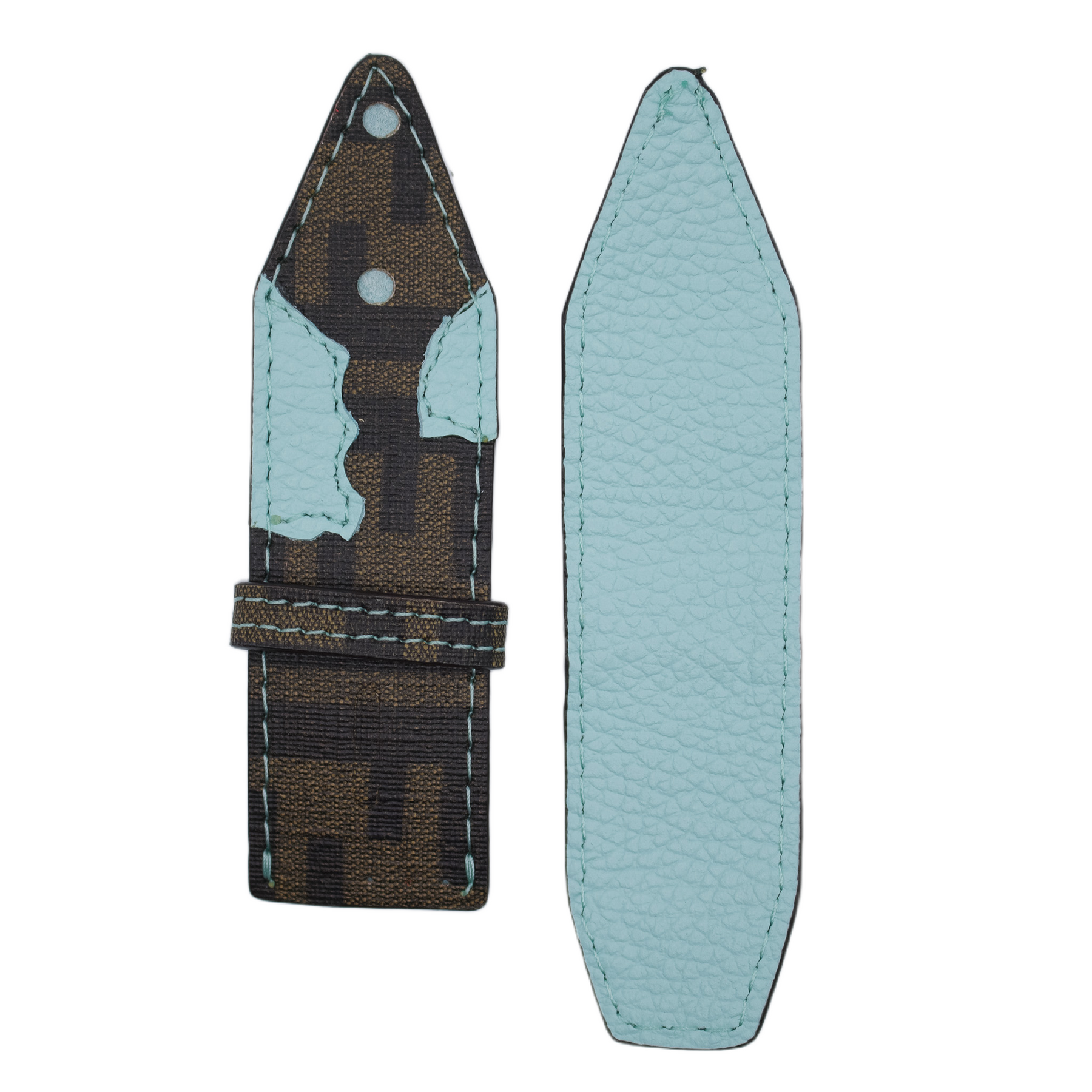 UNICORN - Upcycled Brown Fendi Zucca with Custom Jade Blue Camo Sivella Watchband with Logo (Size 2)