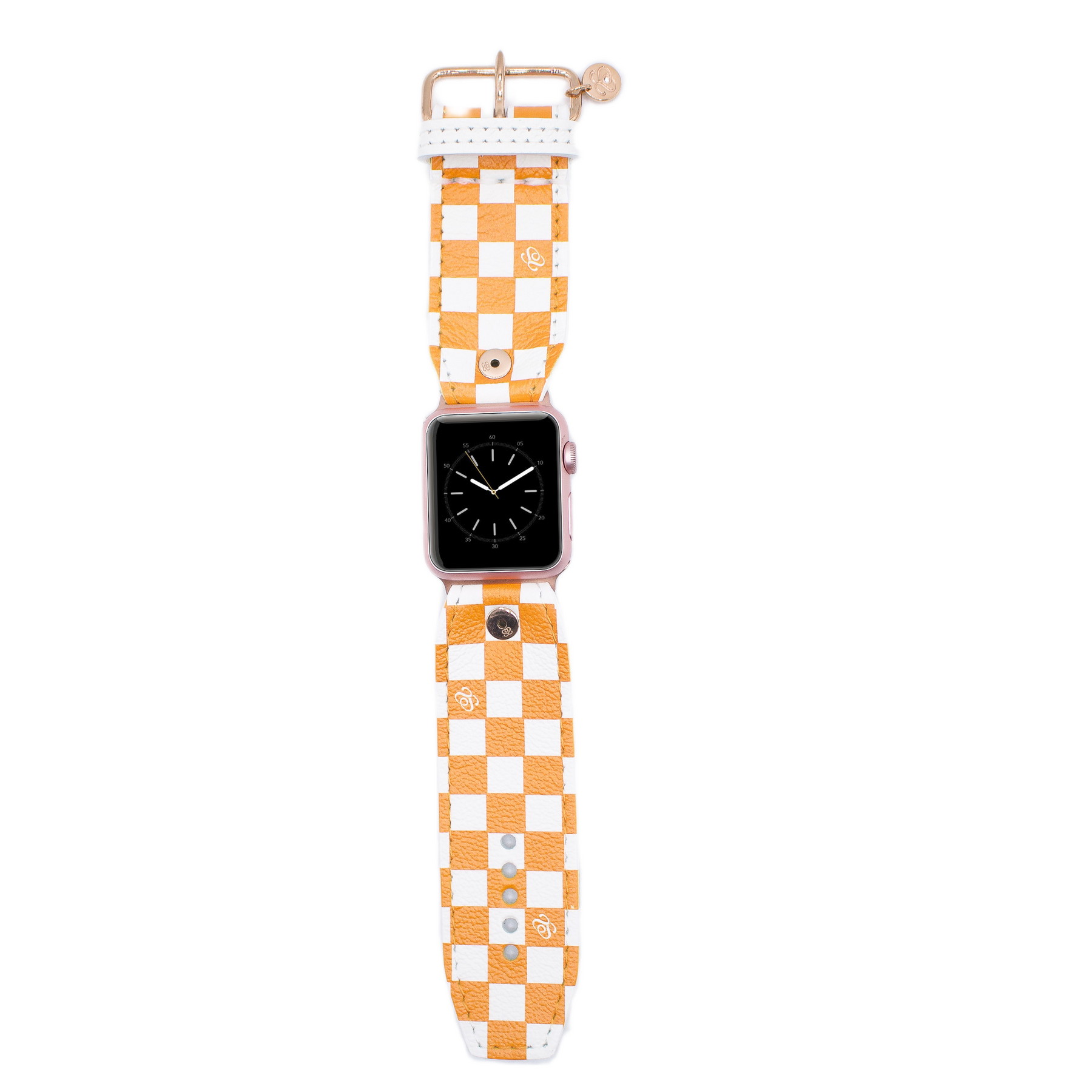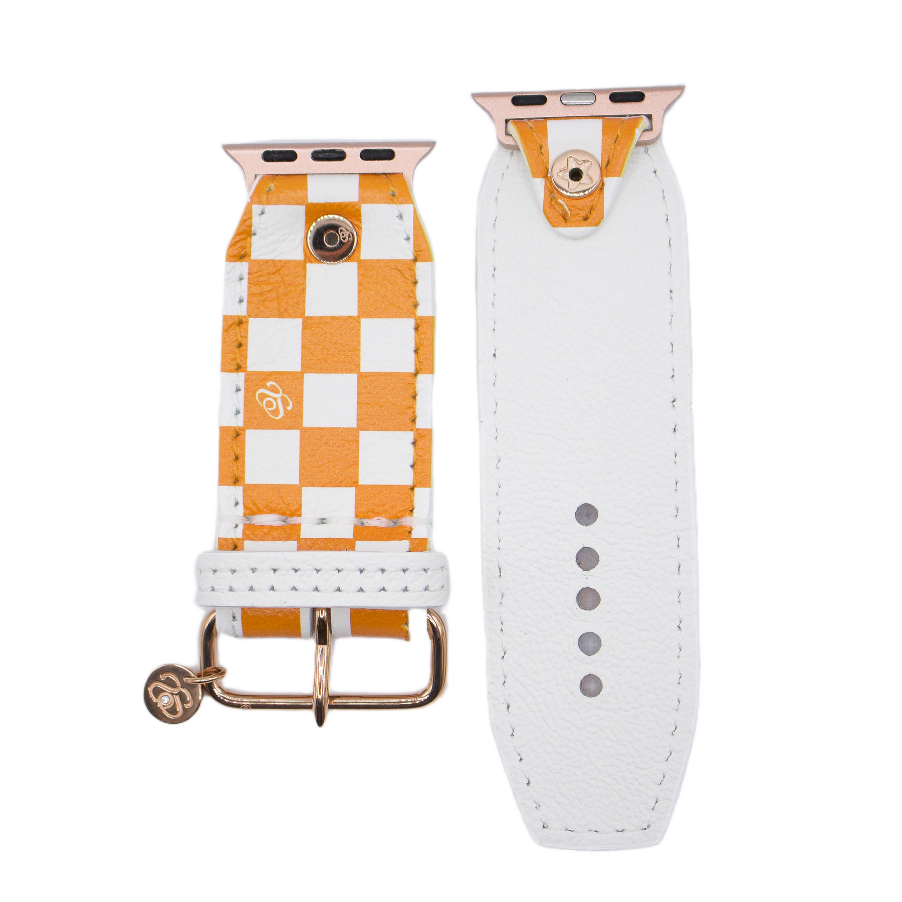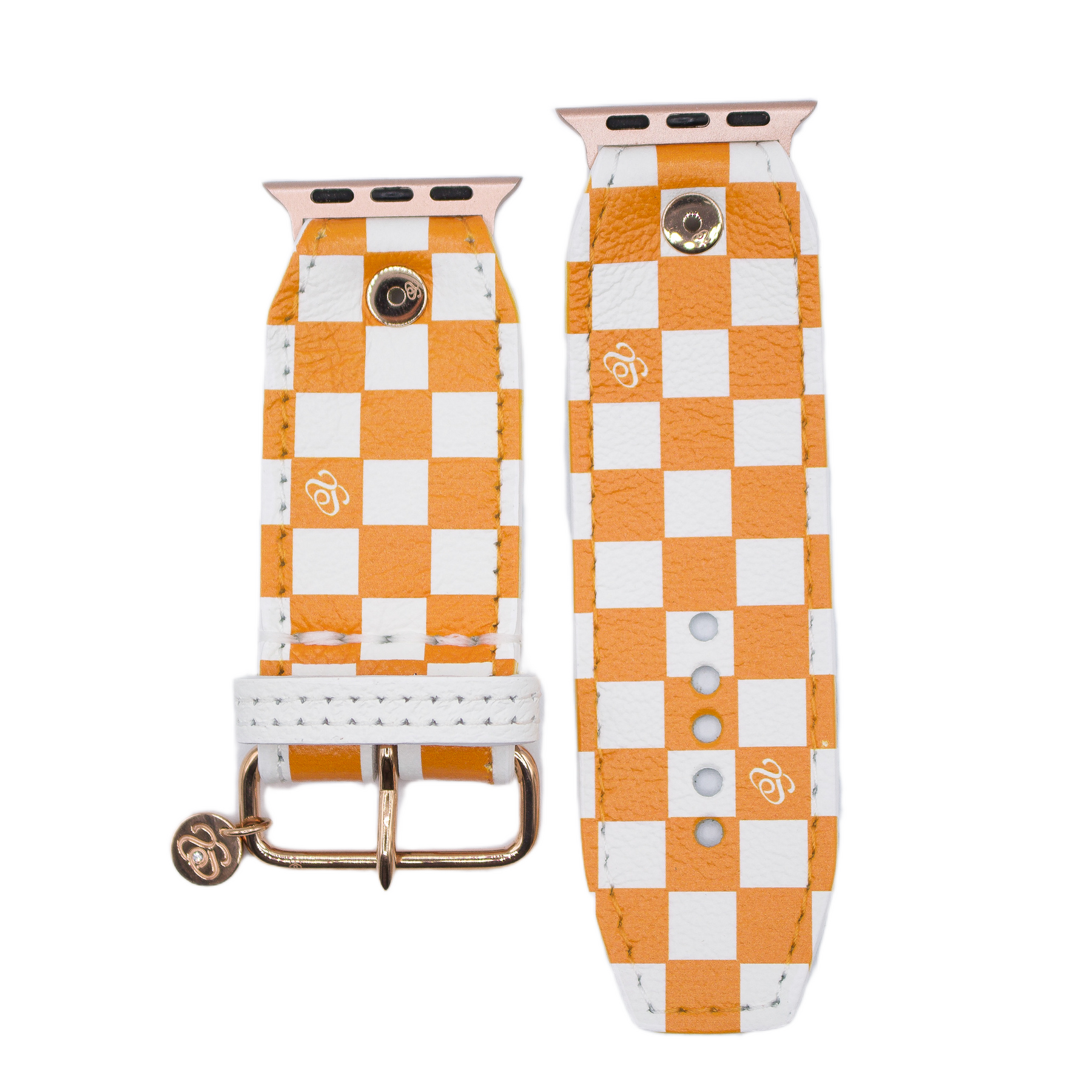 Meet the Tangerine Mini Checks Sivella Watchband- a playful yet refined design that radiates warmth and style. Handcrafted in a cheerful tangerine hue with petite check detailing, this band brings a fresh pop of color to any look while maintaining timeless sophistication!