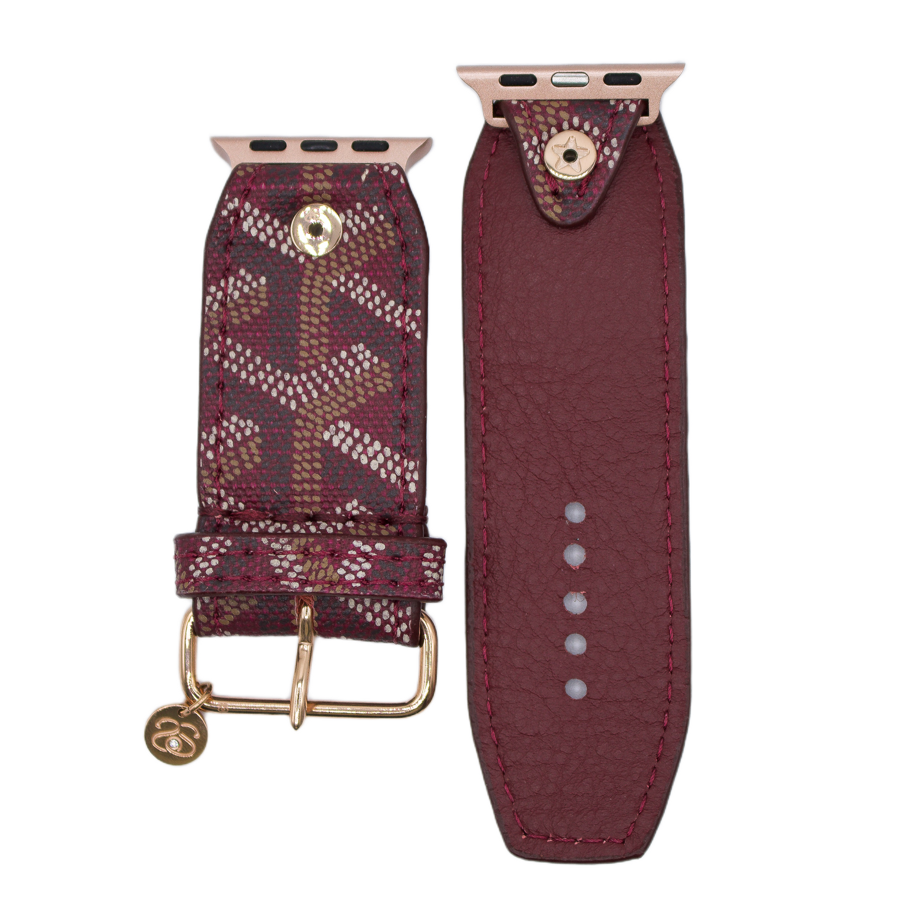 Regular price $399.00Meet the Upcycled Burgundy Goyard Sivella Watchband- the definition of bougie, handmade luxury. Crafted from authentic Goyard material in rich plum-toned burgundy hues, this band radiates warmth, sophistication, and timeless class. A statement piece that effortlessly elevates every look with its refined charm!