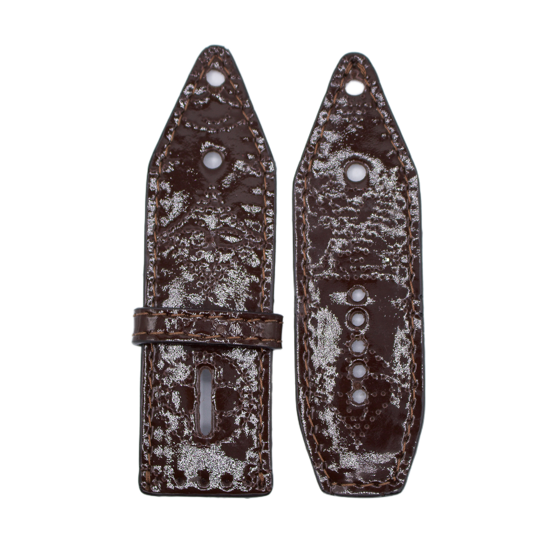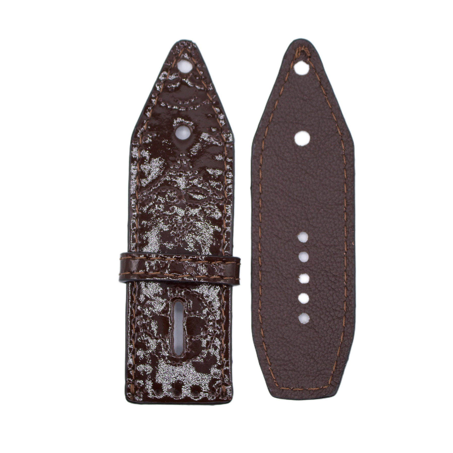 Upcycled LV Patent Brown Mahina Sivella Watchband with Logo (Size 1)